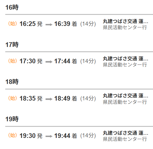 蓮田駅西口→県民活動センター行きのバス時刻表