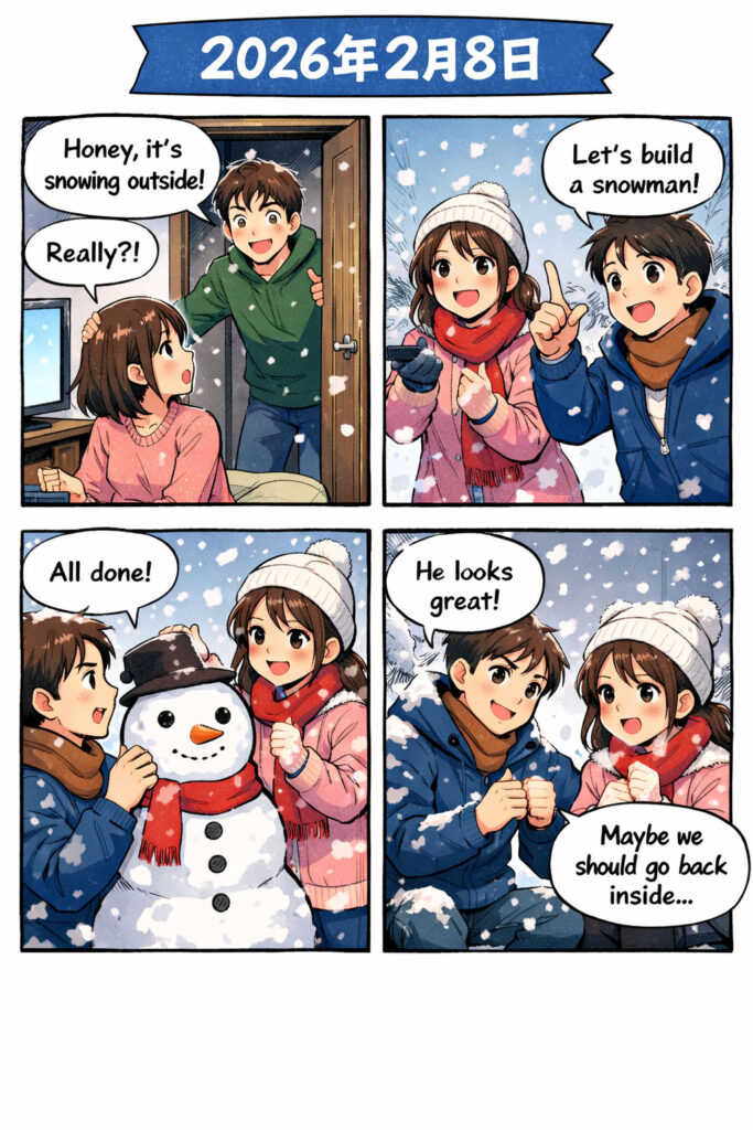 朝5時起床 夜中にトイレ行ったときは雨だったが6時46分は雪が降っている 結構積もりそうな雪だ アレクサに聞いたら1時間後にはやむと言っているので少し安心した